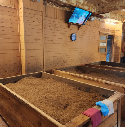 미생물의 성장으로 인해 발생합니다 약 65도의 자연 열로 온 몸을 직접 따뜻하게 데우는 목욕법입니다.