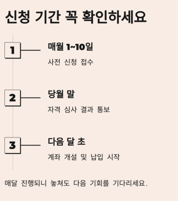 신청 기간은 매달 정해진 일정에 따라 운영됩니다.