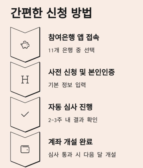 청년도약계좌 신청방법은 은행 앱이나 정부가 운영하는 '청년맞춤형 자산형성 포털'을 통해 접수가 가능합니다.