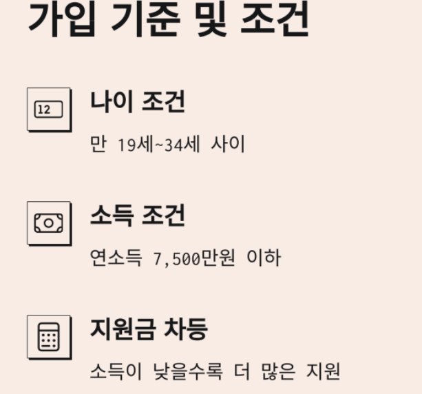 우선 나이는 만 19세부터 34세 사이여야 합니다. 연소득은 7,500만 원 이하여야 합니다.
